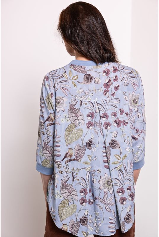 Diese bezaubernde Bluse Country Style besticht durch ihr frisches hellblaues Farbdesign, das mit ansprechenden, braunen Pflanzenmustern verziert ist. Diese harmonische Kombination aus Farben und Motiven verleiht der Bluse einen rustikalen, aber dennoch eleganten Look.