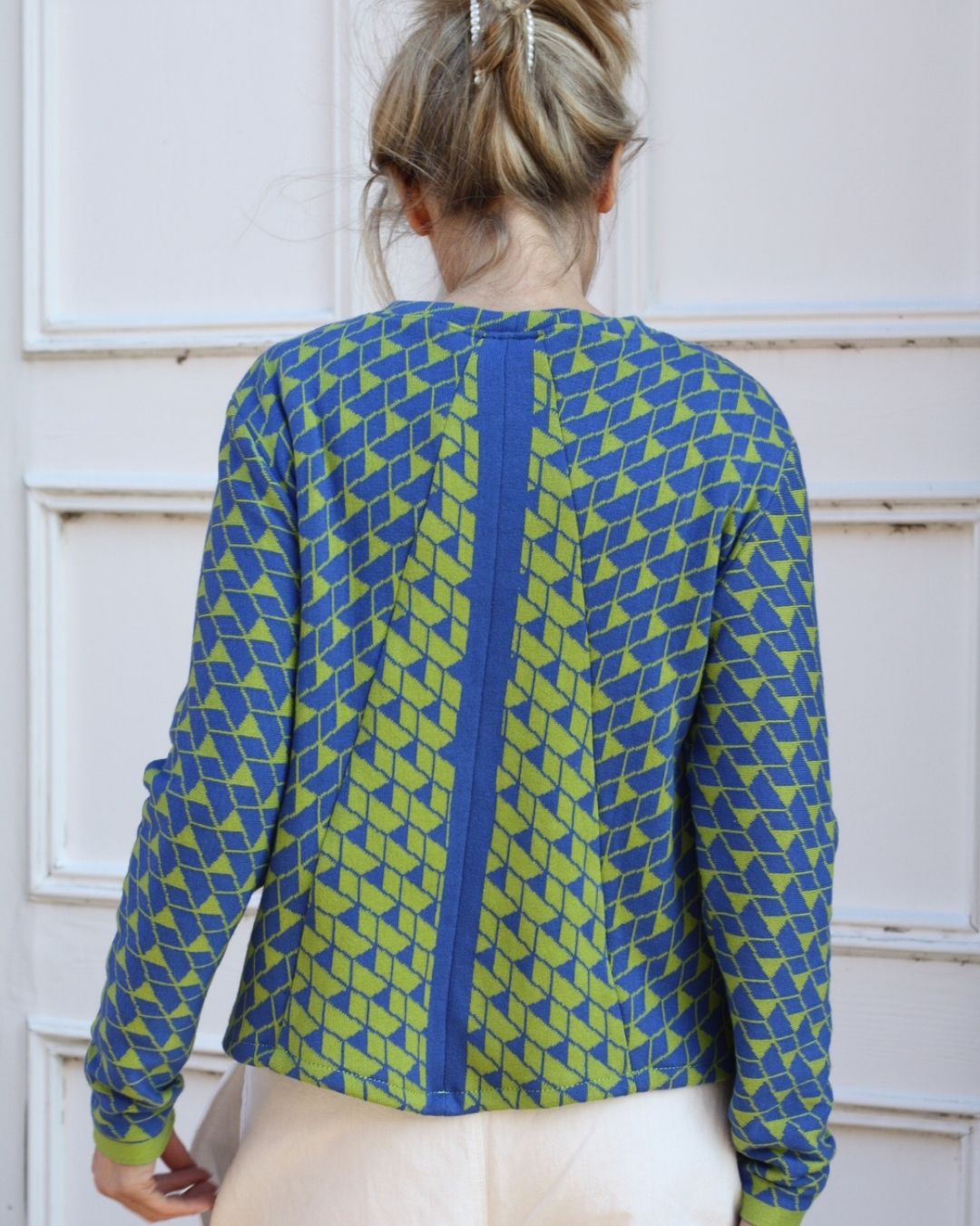 Entdecken Sie unseren stilvollen Sommer-Pullover aus hochwertiger Bio-Baumwolle in einem frischen Grün und Blau. Achten Sie auf das Rückenteil – ein ganz besonderer Hingucker. Dieses modische Kleidungsstück ist perfekt für kühlere Sommertage und bietet Ihnen nicht nur Wärme, sondern auch einen hohen Tragekomfort.